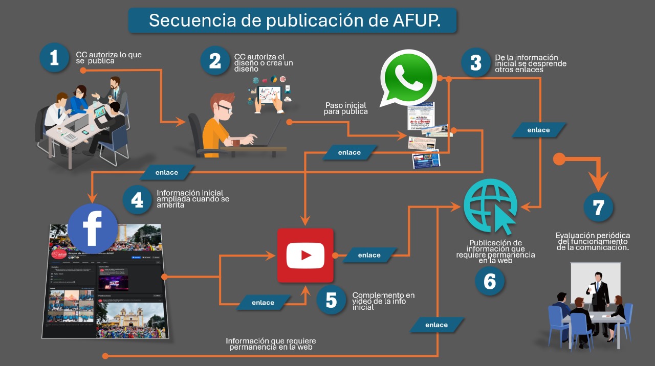 Es importante compartirles el protocolo que hemos diseñado para que la comunicación en AFUP fluya y así cumplir con uno de los objetivos planteados. El mejoramiento del proceso de comunicación.